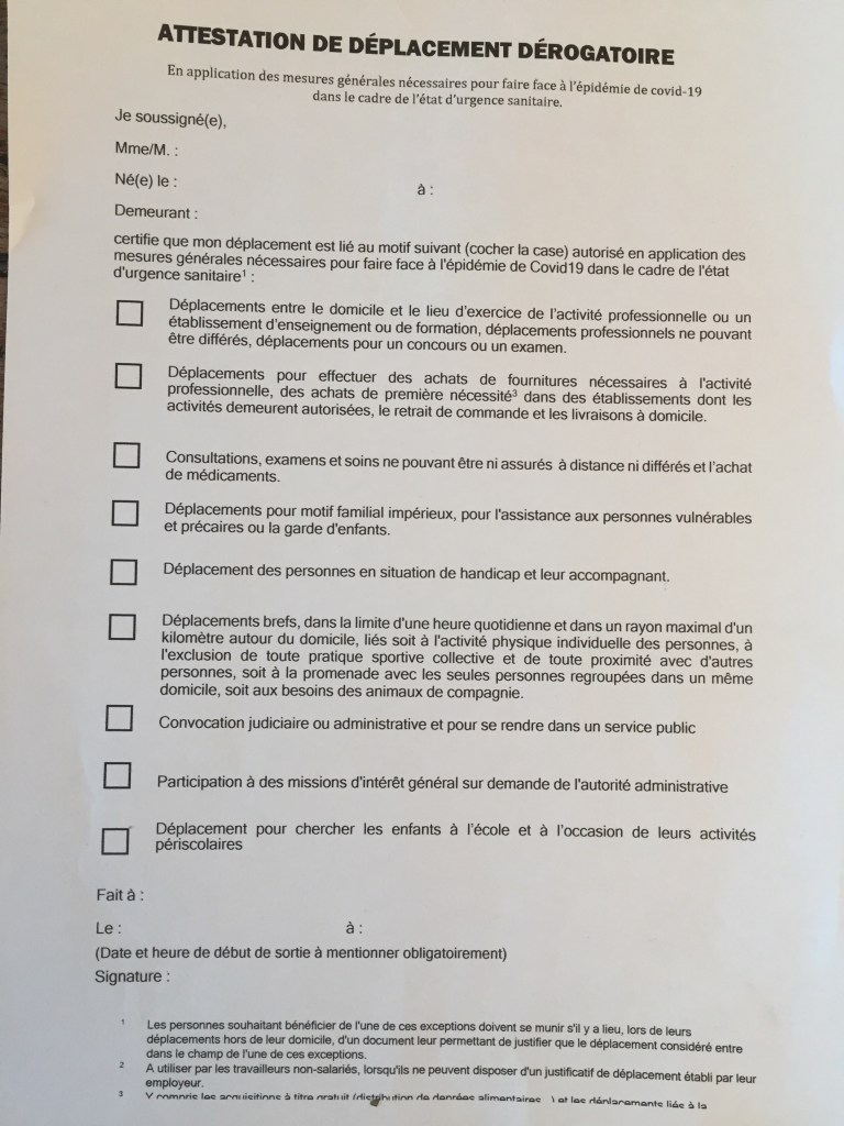 Tandis que nos gouvernants se pavanent sur la « France qui aurait prit les bonnes dispositions au bon moment » ou même « pays d’Europe qui a le mieux géré la crise » , les attestations de sortie vivent leurs dernières heures..